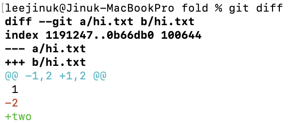 +two는 hi.txt 파일에 two가 추가되었다는 것을 의미합니다.
