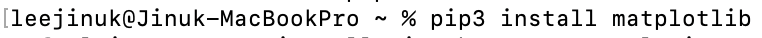 예로 matploblib(프로그래밍 언어 및 수학적 확장 NumPy 라이브러리를 활용한 프로팅 라이브러리)을 install 해보겠습니다.