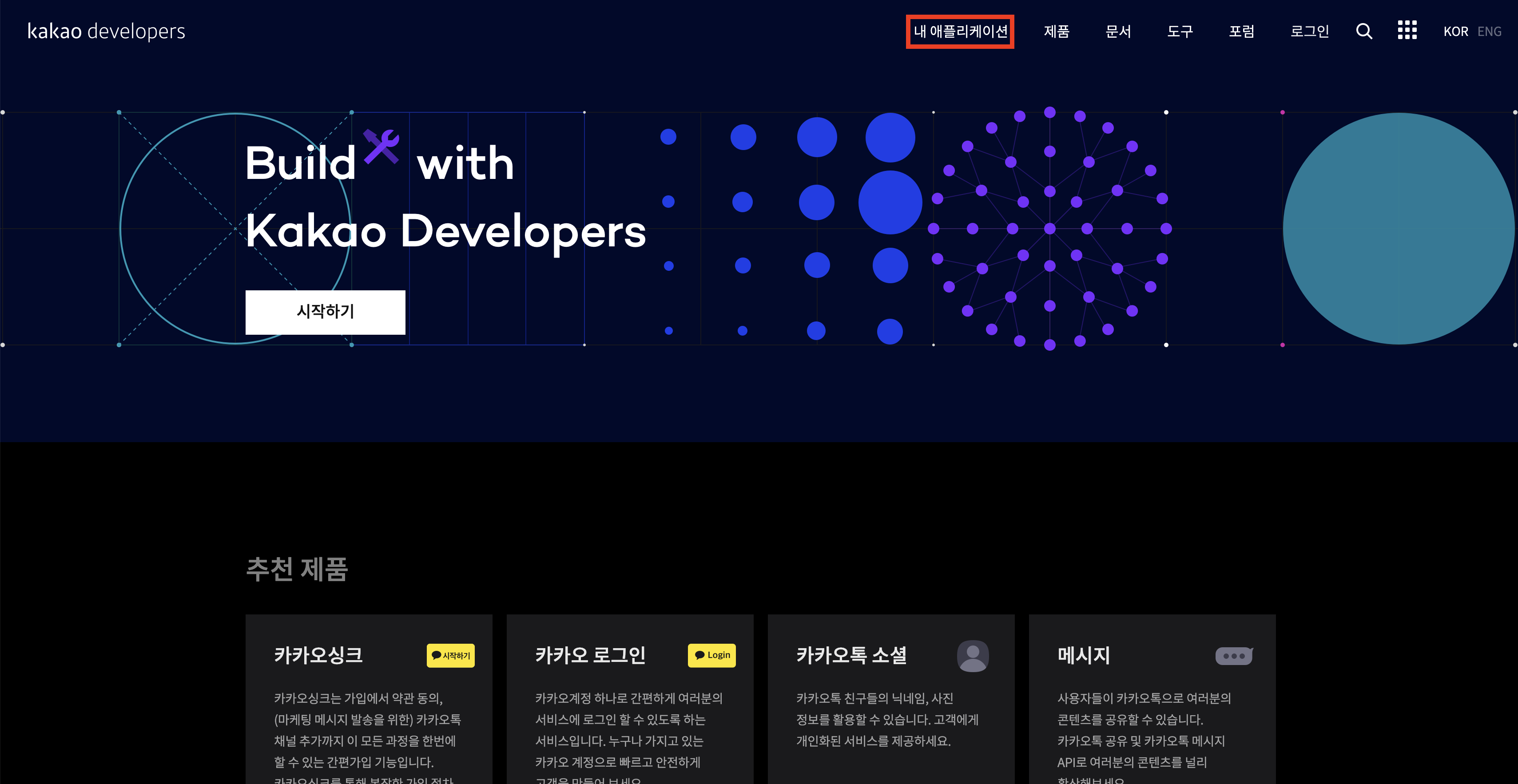 1. 카카오 개발자(developers)사이트에 방문합니다.
