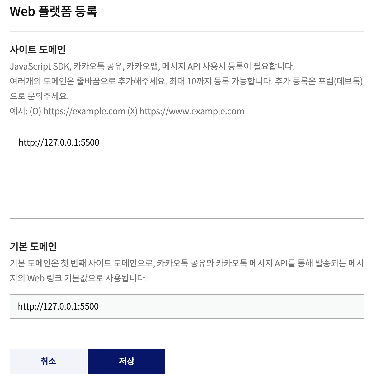 (예제같은경우 http://127.0.0.1:5500입니다.)