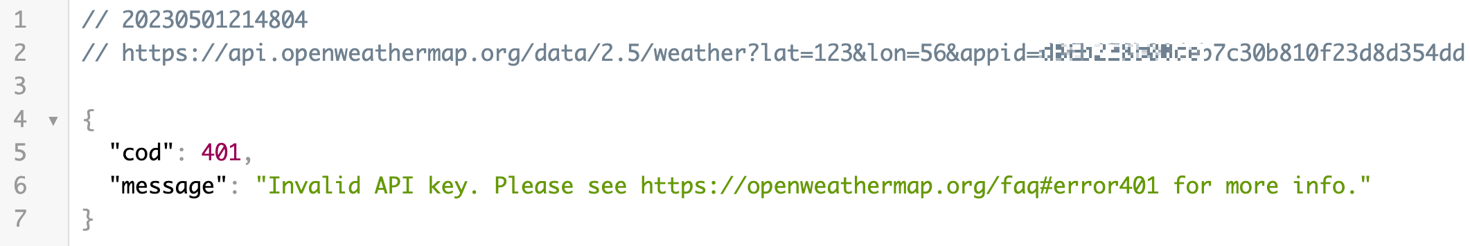 API 키가 잘못되었습니다. 자세한 내용은 https://openweathermap.org/faq#error401 을 참조하십시오.