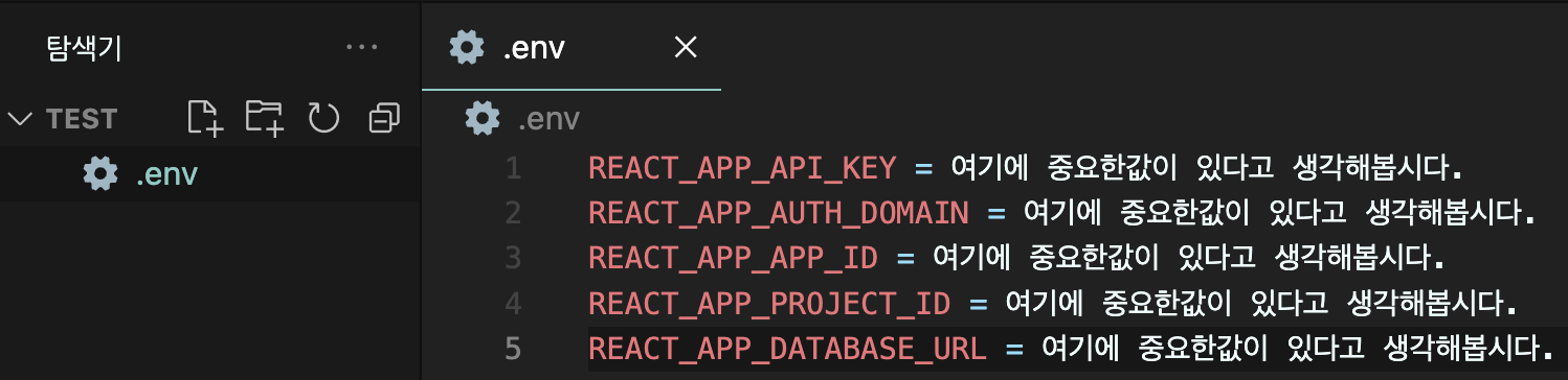 먼저 폴더를 만들어주고 .env파일을 간단하게 만들어보겠습니다.