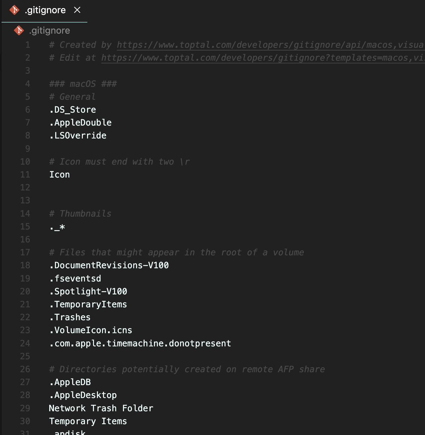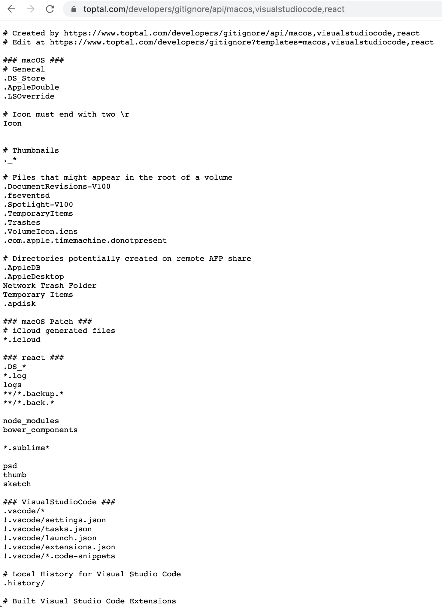 이 사이트에서 자신의 프로젝트에 꼭 맞는 .gitignore 파일을 만들 수 있습니다.