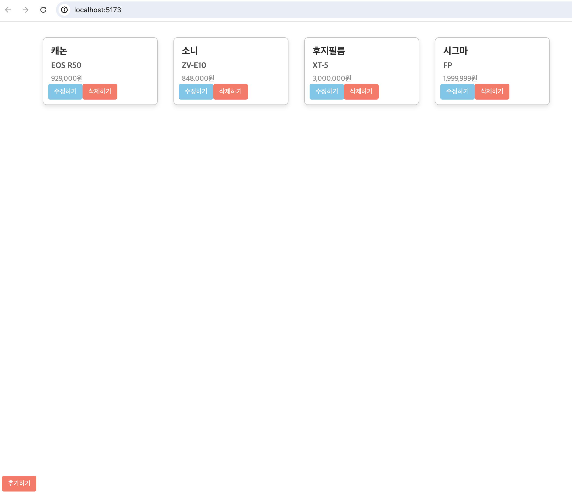 카메라를 추가하고 수정하고 삭제할 수 있는 버튼을 만들고 해당 데이터들을 db.json에 저장해보겠습니다.