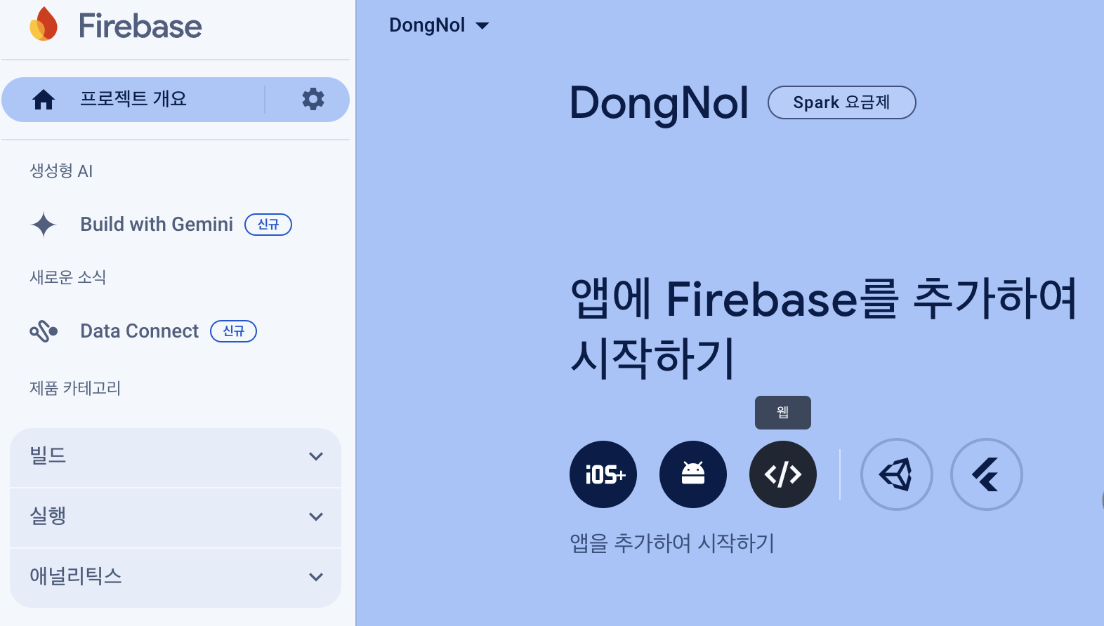 빠르게 파이어베이스에서 사용할것들을 세팅해주었습니다.