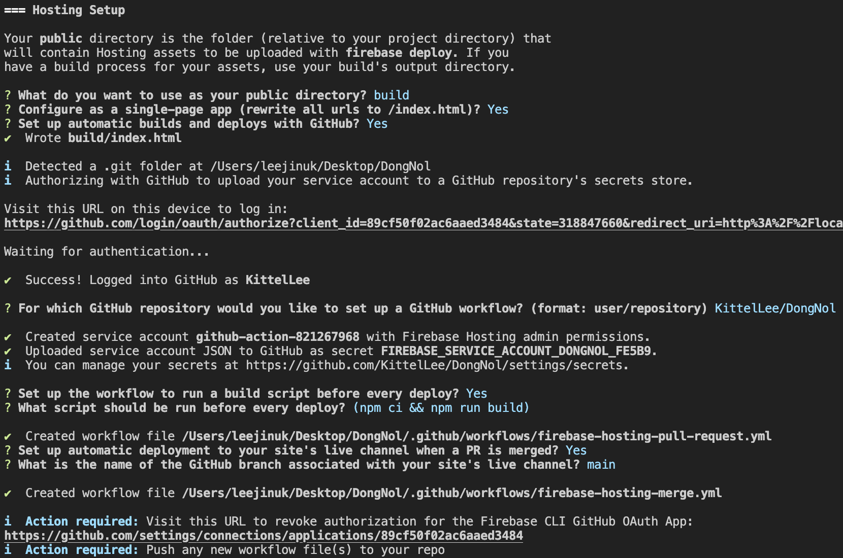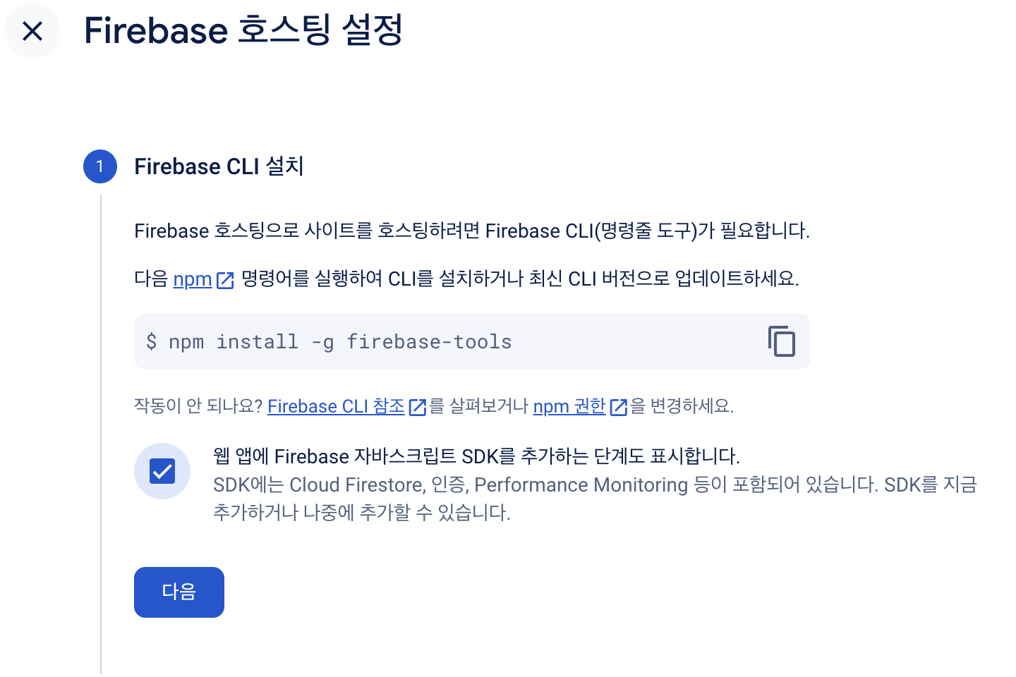 다시 파이어베이스 호스팅설정으로 돌아갑니다.